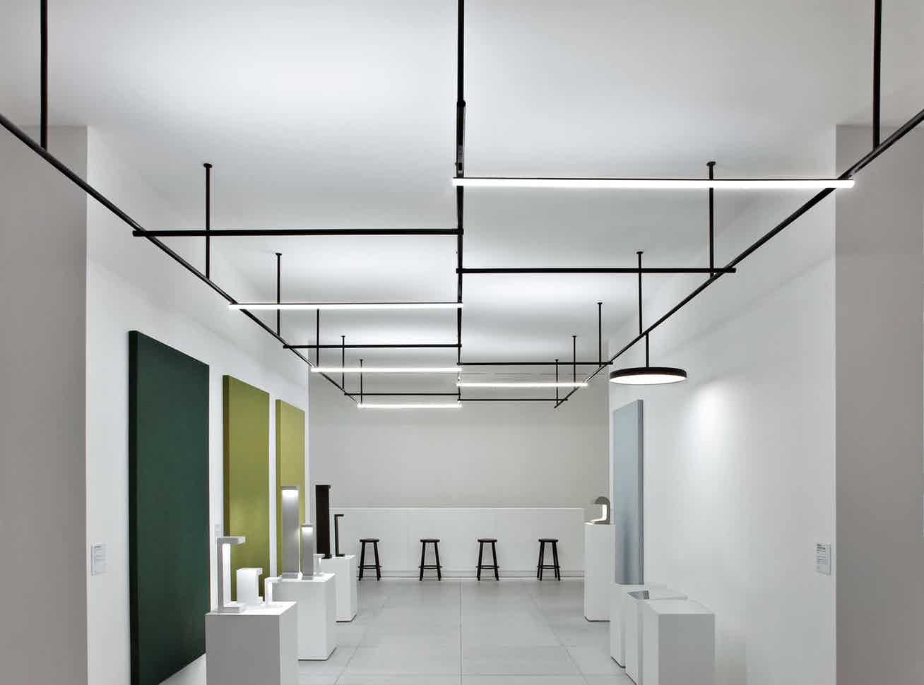 Tubular structure compatible with a wide range of light fixtures with magnetic fastening and mechanical safety locking. Regulation and control with universal protocols and using the FLOS SMART CONTROL? application.