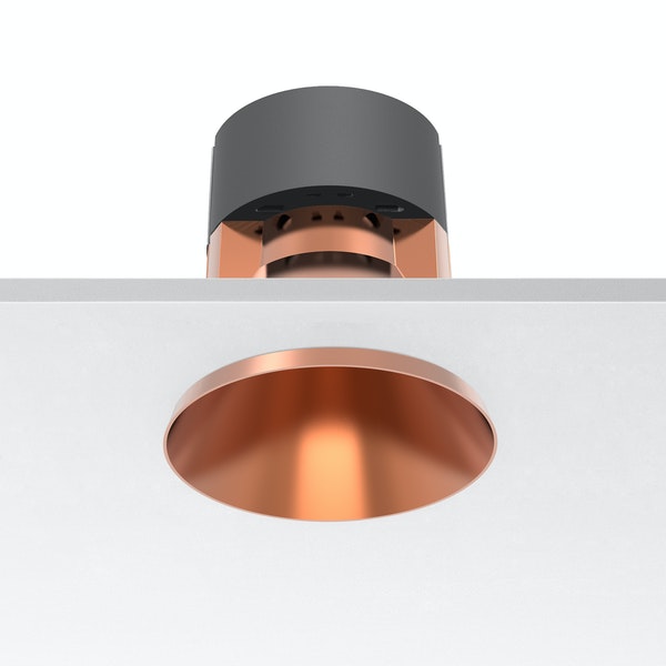Recessed LED with an unusual design, thanks to the small edge that defines the presence of the luminaire. Comes in three sizes with different optics for a better personalisation. Pure lines highlighted with the refined finishes, in neutral and metal plated versions.