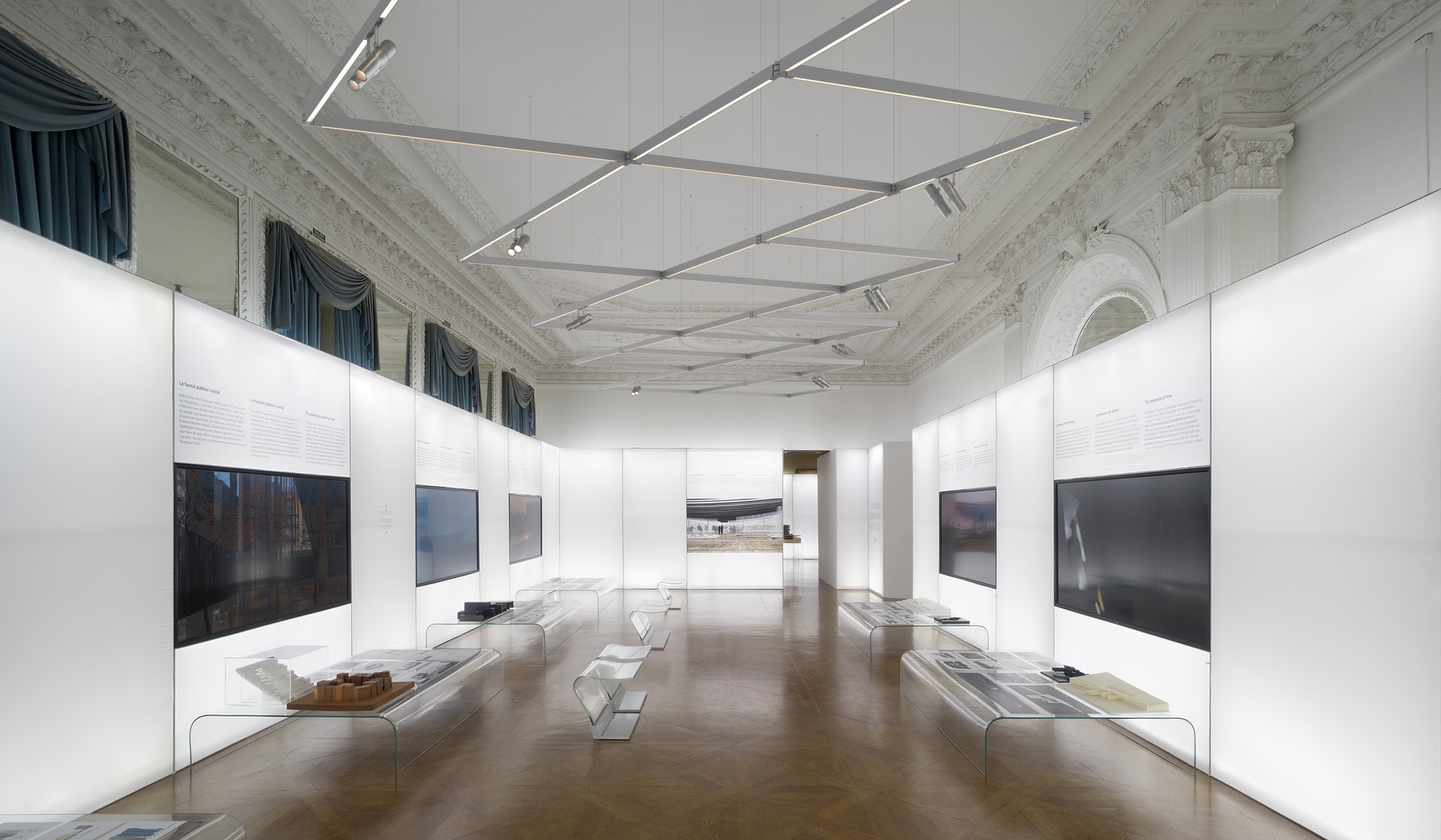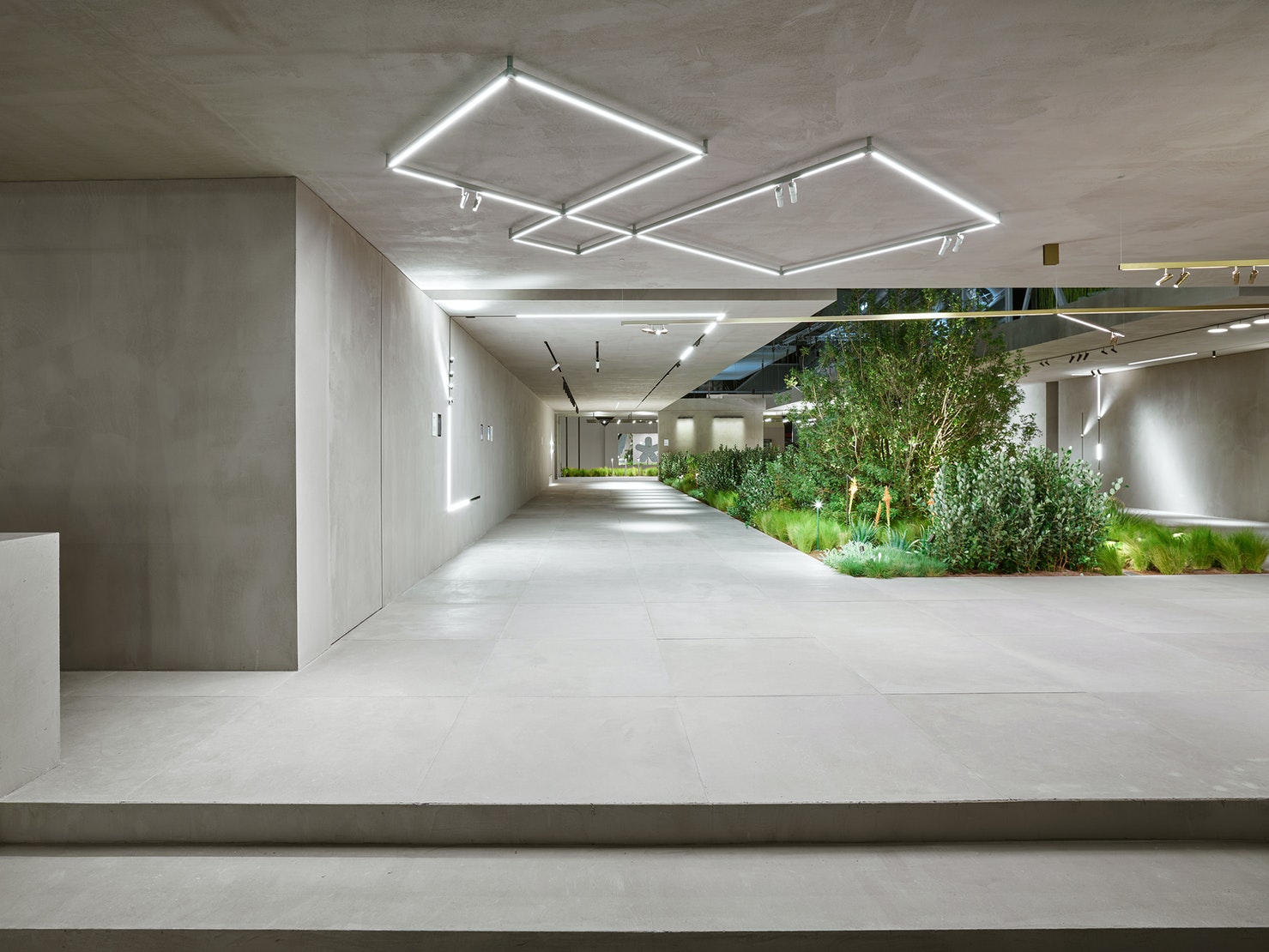 Innovative profile system for surface and suspended installation characterized by an extreme flexibility. Profiles are equipped with integrated lighting available in direct and indirect emission with the possibility of adding two spots in order to combine accent lighting.