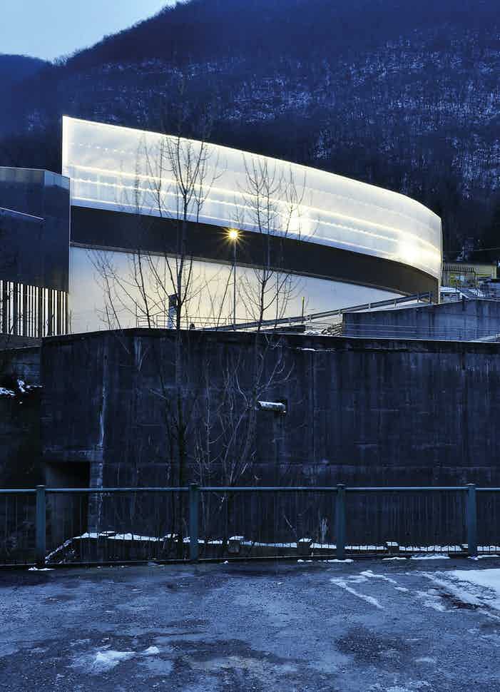 Transparent or sandblasted glass diffuser with silkscreen border, fixed through a robotic gluing system.