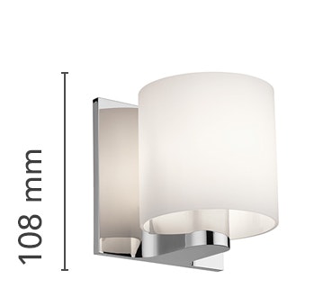 Wall sconce providing diffused lighting. Die-cast Zamak body. Flashed, blown glass diffuser.