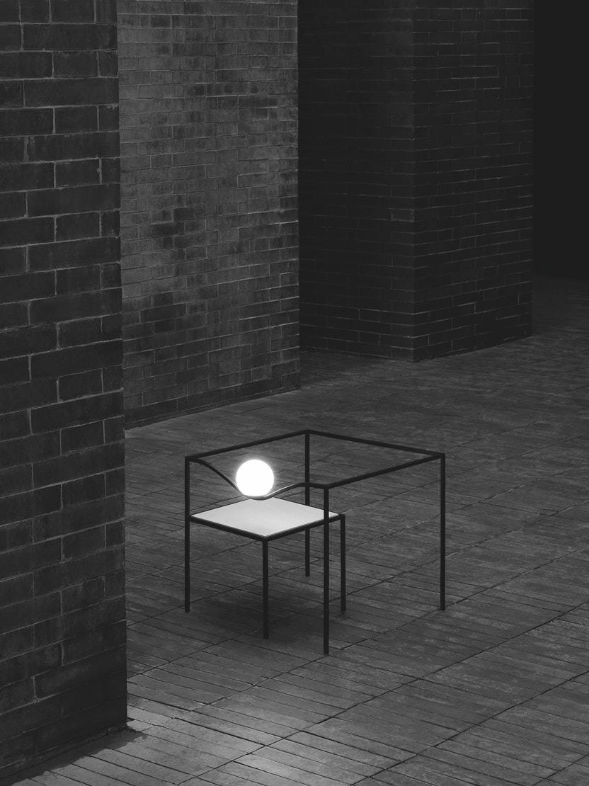 ? With a combination of a thin frame and an illuminated sphere, the collection offers two configurations of objects; either as side tables or as floor lamps leaned against a wall. The “soft” shape of the frames, grants the objects a sense of character and creates a unique visual, as if capturing the weight of light itself. ?