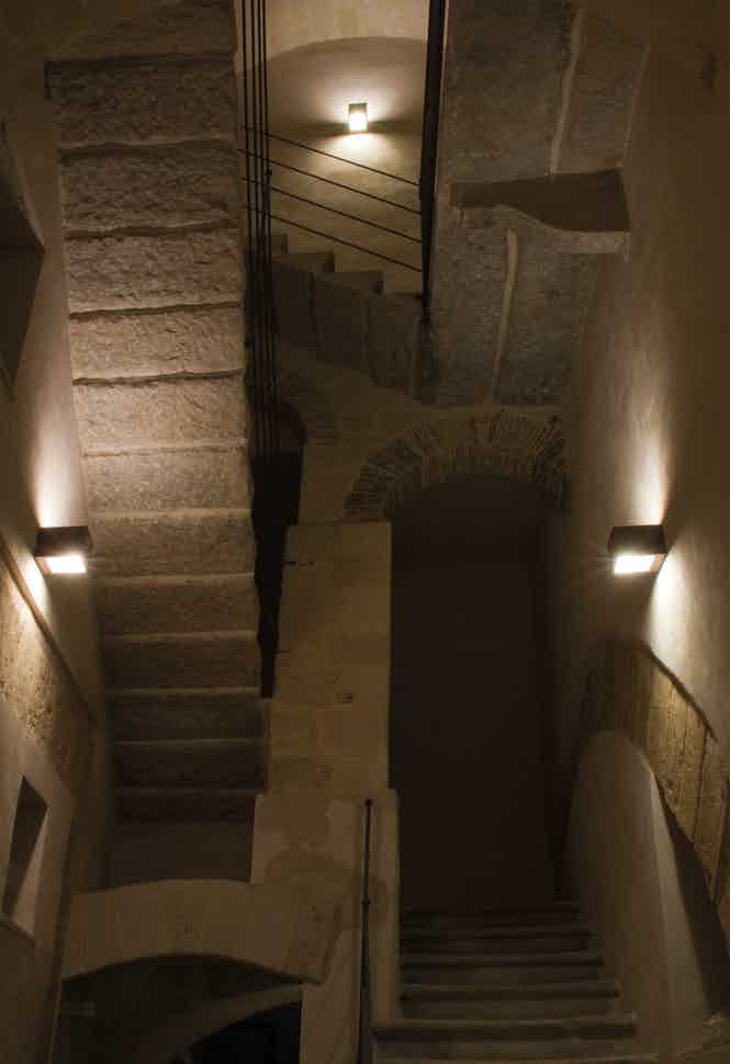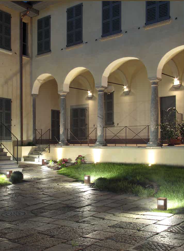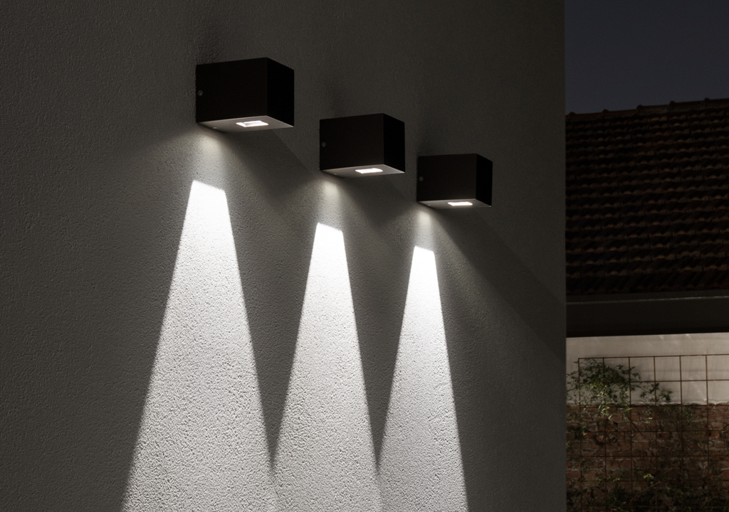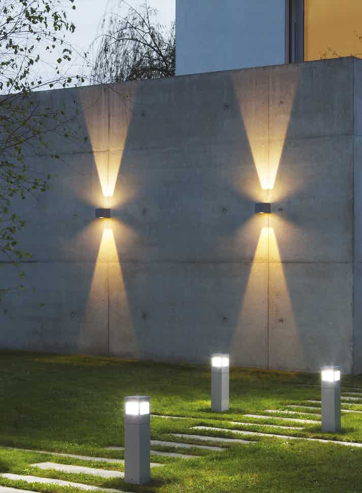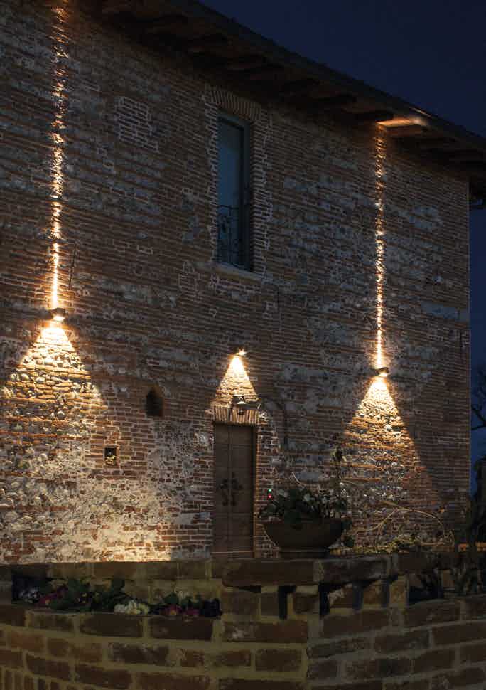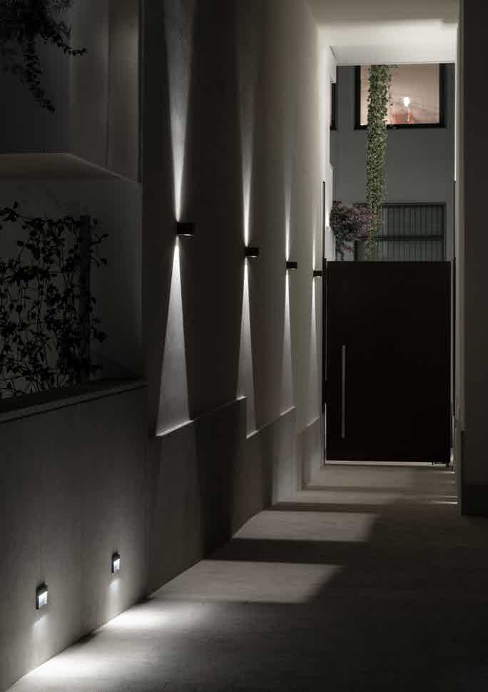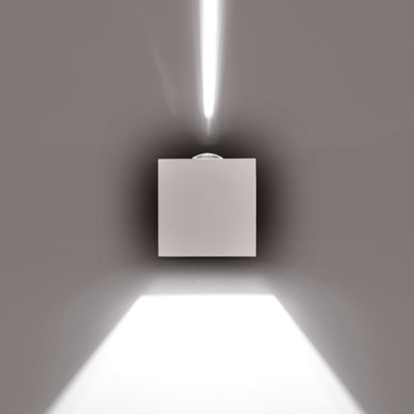 Square luminaire for wall installation, for creating light effects.Transparent glass diffuser or with convex lenses with silkscreen border.