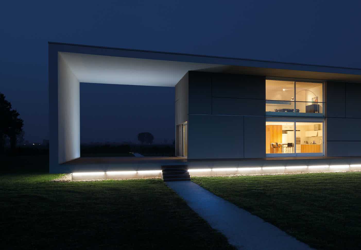 Linear luminaire for wall or ceiling installation, available in four lengths.