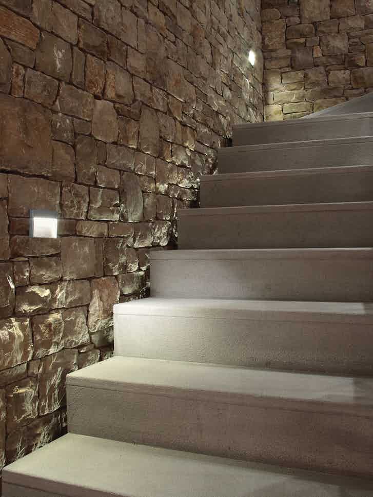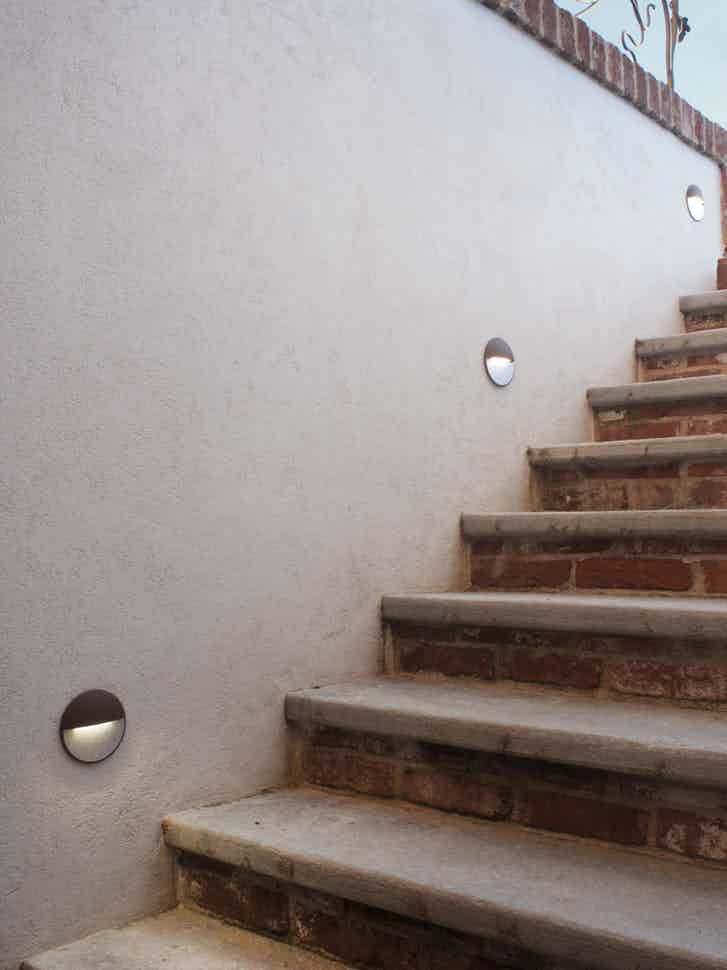 Rectangular or round luminaire with reduced thickness for wall installation. The power supply unit can be installed in a remote position (no box required) or housed behind the luminaire using an optional, 3-module box (model 503).