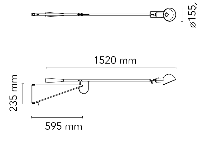 Wall lamp providing direct light. Painted steel adjustable arm and reflector. Chrome-plated brass reflector support. Cast iron tapered counterweight. Painted steel wall fixture.