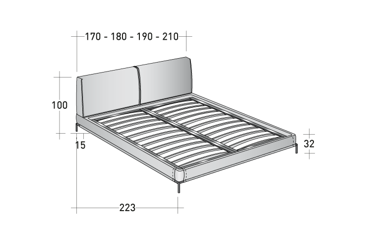 強大而果斷的雙人床設計,其陽剛特征遠離寒冷和簡約的線條,由珍貴的紡織品組成。擁有柔軟襯墊的床頭板,覆蓋為可拆卸的織物或皮革底座,與床尾部可感知的精致金屬細節形成鮮明對比。躺臥表面可調節板條或電動運動。豪華和舒適是床的基石,它應該具有完美的比例,為床頭板的接縫增添了一絲優雅,并采用明智的剪裁。