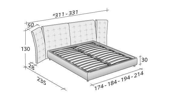 雙人床,十分優雅,床頭分普通型和屏風式。床頭板帶可拆卸軟襯,可選用皮革或布料包覆。