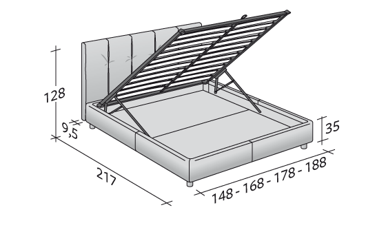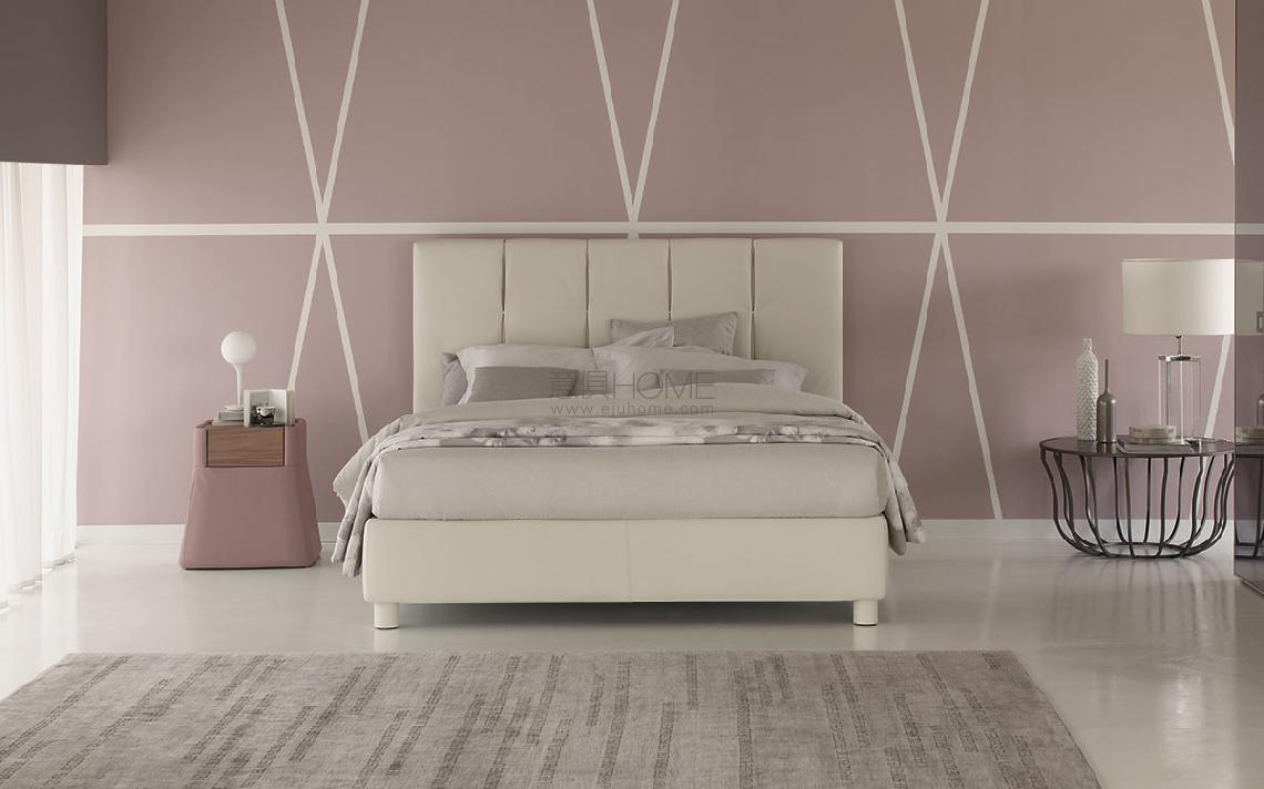 Argan 是一款具有現代設計感的床。床頭板和底座均有帶軟襯包覆物,帶有褶縫裝飾,可拆卸。罩物有皮革,布料和人造革可選用,圓柱形床腳為鋁色或是以布料或皮革包覆。床架可選 Leonardo 底座,固定底座,帶儲物箱底座或電動床架。