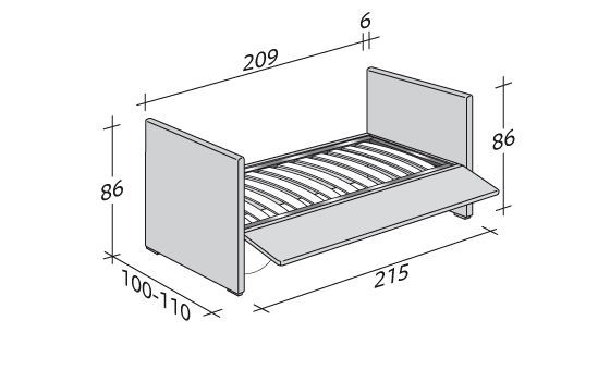 Biss是一款多功能單人床,有兩種版本:底座帶節省空間的容器或帶側開口的底座,可容納第二張折疊床。首先,床具有帶側開口的容器底座(根據需要向右或向左)。第二,床的底部有一個側面可以打開(根據需要向右或向左),以容納第二個床。后者沒有床頭板,配備有便于提取的輪子。