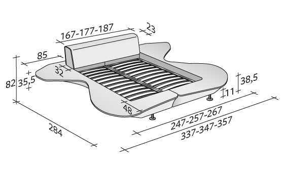 風(fēng)景雙人床。 舒適的“Memoform”軟墊床頭板,白色棉質(zhì)枕套。 成型的側(cè)帶,可以充當(dāng)座椅和支撐表面。 完全可拆卸的面料、皮革或人造革罩子。 休息面隔板,可調(diào)節(jié)板條,嵌入式床墊。 可配圓形玻璃臺面。
