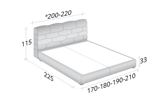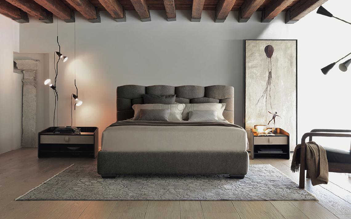 床頭有兩種規格: 與床同寬,或兩側超出床寬。Majal 床的罩物可選織物面料或真皮,均能很方便地拆卸。