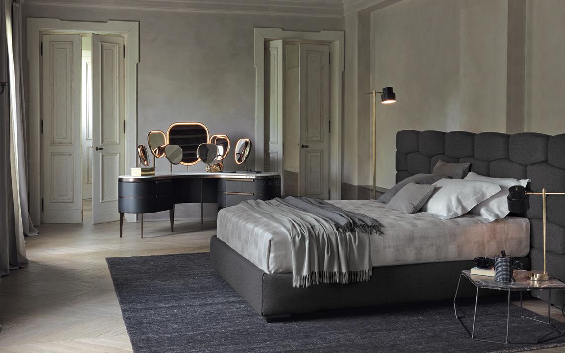 床頭有兩種規格: 與床同寬,或兩側超出床寬。Majal 床的罩物可選織物面料或真皮,均能很方便地拆卸。