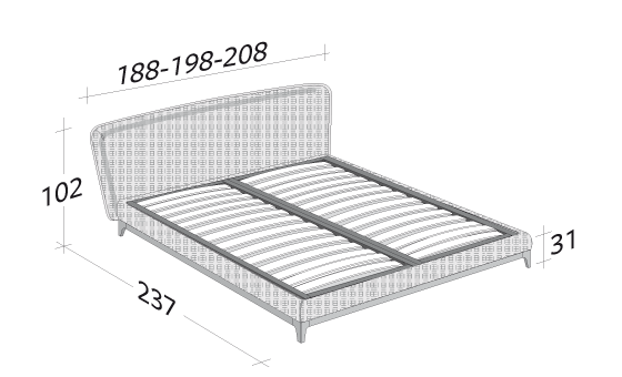 Ultrachic的床頭板和底座采用專業編織皮革制成,同樣精致的版本帶有可拆卸的無蓋皮革薄皮層,織物或人造革。 休息面由可調節活動板條和電動升降調節。鋼結構和四個鋁制腳部涂有拋光表面,賦予床架極大特色。