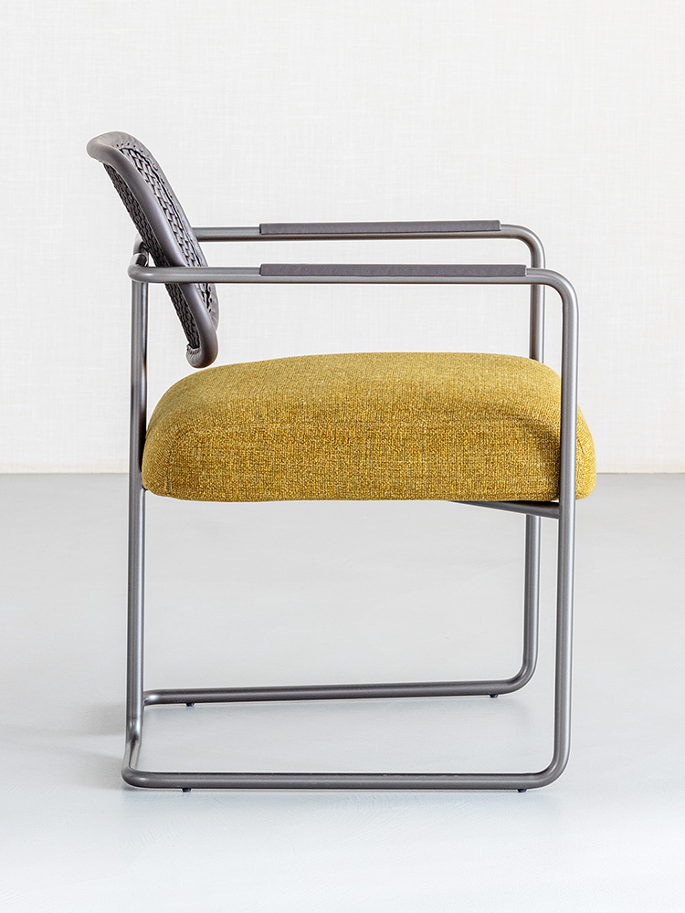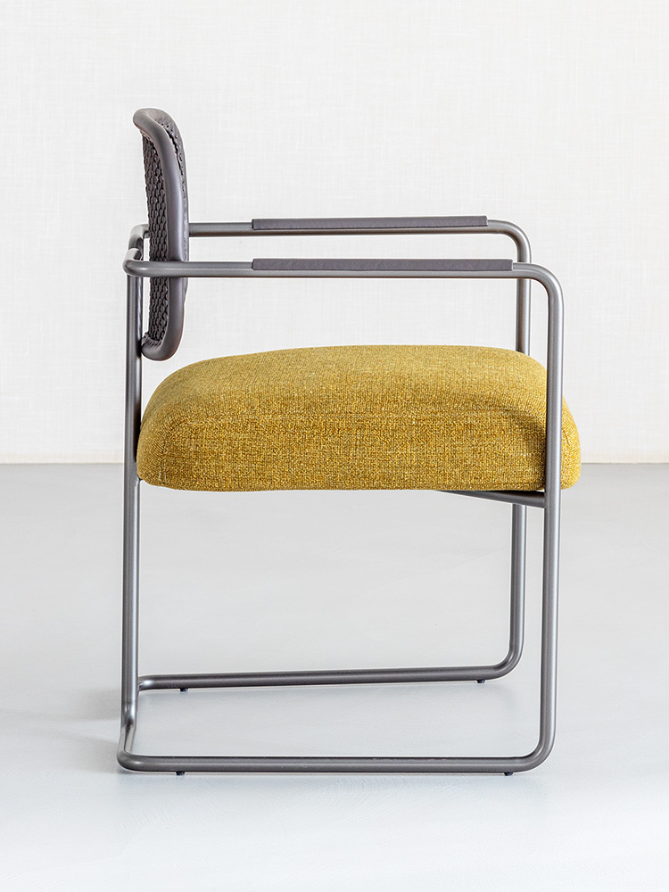 從傳統(tǒng)演變而來(lái)的制作工藝,大膽融入現(xiàn)代形式,呈現(xiàn)出一件極為考究的產(chǎn)品。扶手上的皮革嵌件、軟墊座椅的柔軟度、靠背的傾斜度,每一個(gè)細(xì)節(jié)都經(jīng)過(guò)精心研究,讓這款沙發(fā)更為舒適宜人,單人沙發(fā)采用啞光拋光漆面金屬支架,可拆卸面料或皮料罩面軟坐墊。可傾斜靠背采用和支架一樣的漆面金屬做支撐,表面覆蓋編織皮料。皮革扶手細(xì)節(jié)和靠背的顏色相同。