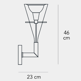 Un cono di vetro alloggia il riflettore in alluminio cromato, sorretto da tre aste sottili in metallo. Equilibrio e leggerezza per questa famiglia di lampade disponibili nella versione da terra e parete per una emissione di luce indiretta e a sospensione, per una emissione di luce puntuale e diretta.