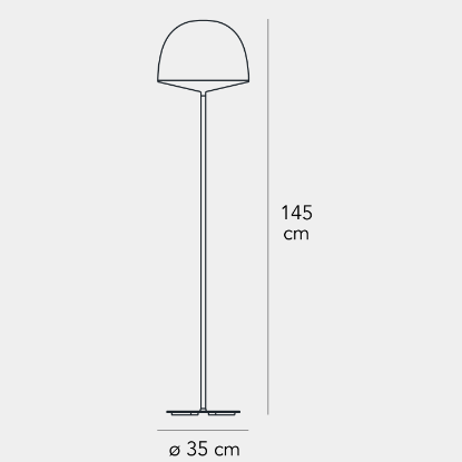 Riflette l’impronta nordica dello studio nella semplicità dell’estetica e della funzionalità. La calotta è di policarbonato opalino per favorire l’emissione diffusa; colorato per diffondere la luce verso il basso nella versione da tavolo e da terra oppure verso l’alto (nella versione sospesa).