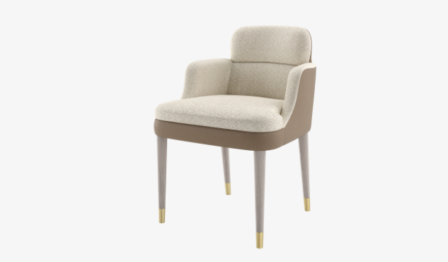 The captivating MODENA chair is a charming blend of comfort and poise. Employing a palette of easy-going neutrals, the design features a cocooning seat upholstered internally in fabric and externally in leather, and slender wooden legs capped in complementary brass.
