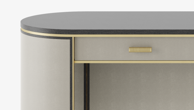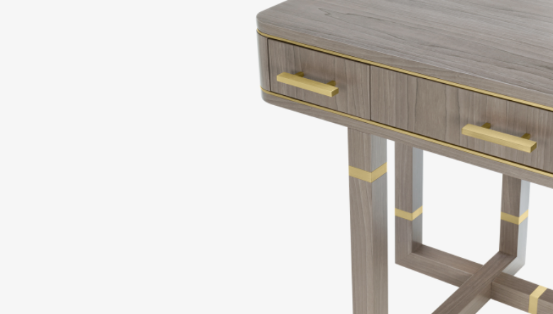 Looking to add some wow-factor to your home office? A distinctive blend of veined wood veneer and brushed brass, the LIMA desk is designed to standout, while multiple drawers will keep paperwork in check.