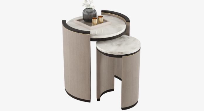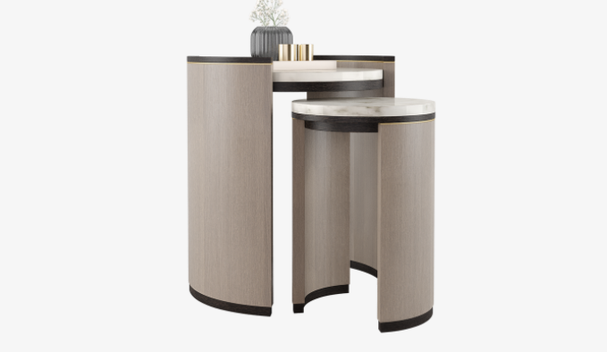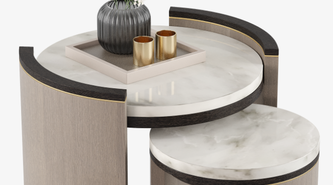 Inspired by our popular CEUTA coffee table, the refined CEUTA side table blends rounded edges and smooth surfaces with a superior palette of stone, veneer, solid wood and brushed brass. To keep things looking tidy, simply slot the smaller volume beneath the larger when not required.