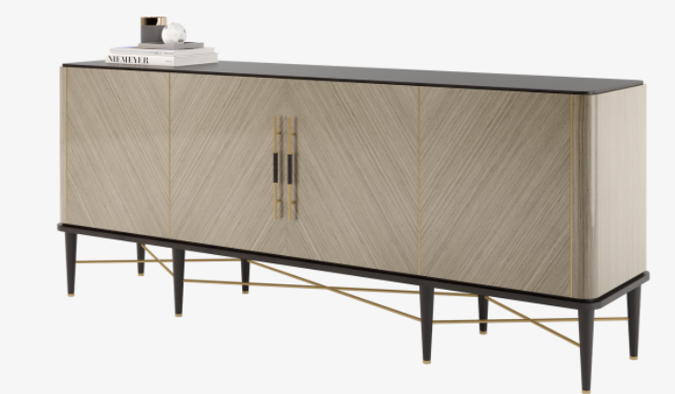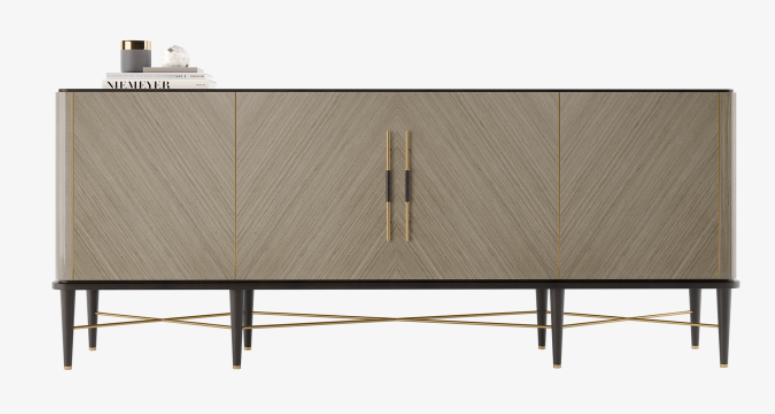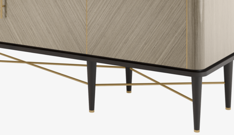 "FRATO’s jeweller’s eye for detail can be seen in the SANTORINI sideboard, which is accessorised with unexpected brushed-brass details from the handles to the framework. Brushed brass detailing embellishes the high-gloss wood veneer for a piece that’s both sleek and unique. Slender legs and slim brass handles lend the aesthetic an air of lightness. "