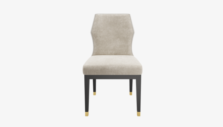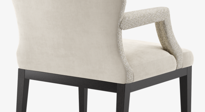 "An hourglass-shaped backrest and perfectly square seat distinguish the OXFORD dining chair’s stylish silhouette. Free from arms, its narrow profile allows you to add more seats at the table. "