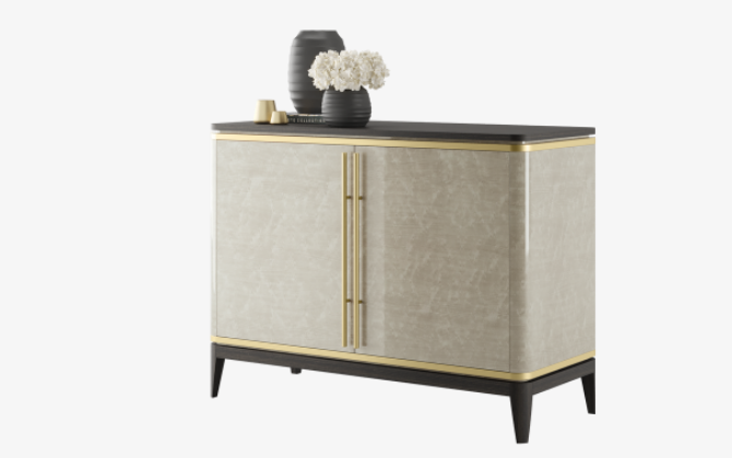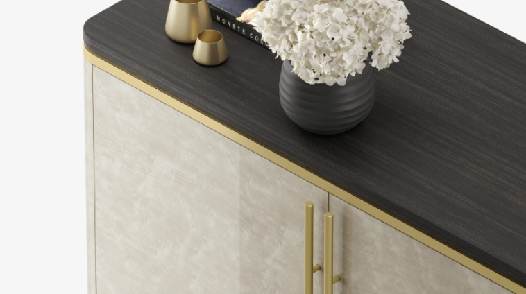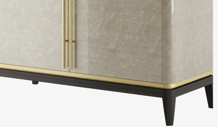 Not only does our SIENA Cupboard feature a highly unique wood veneer, it’s finished with fine brushed brass handles that complement the brass trim and add an air of lightness to the overall design.