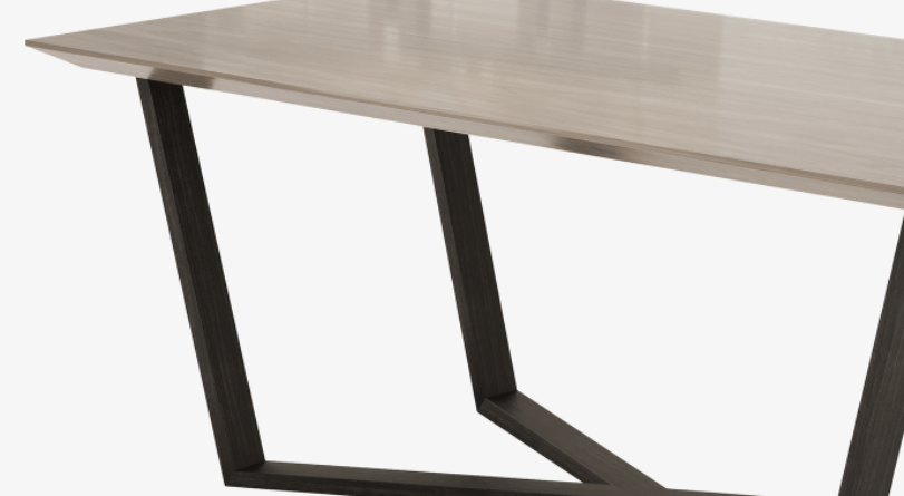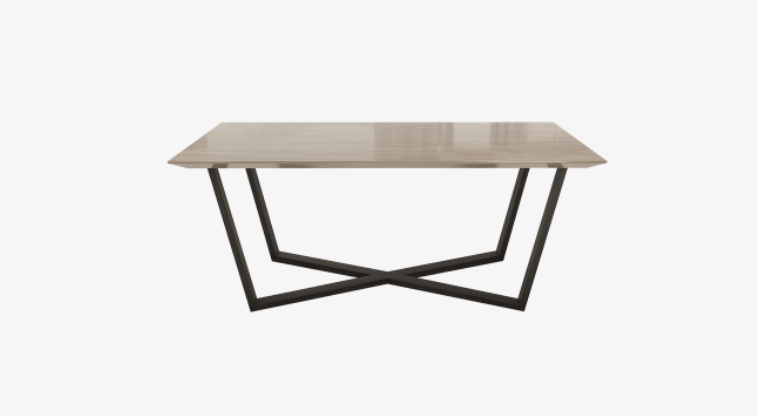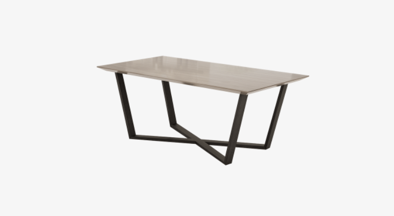 A contemporary dining table, the sleek JOHANNESBURG design features a clean-cut rectangular surface, with inclined edges, that's fashioned out of light-reflecting wood veneer. This rests on a distinctive X-shaped base hewn from solid wood.