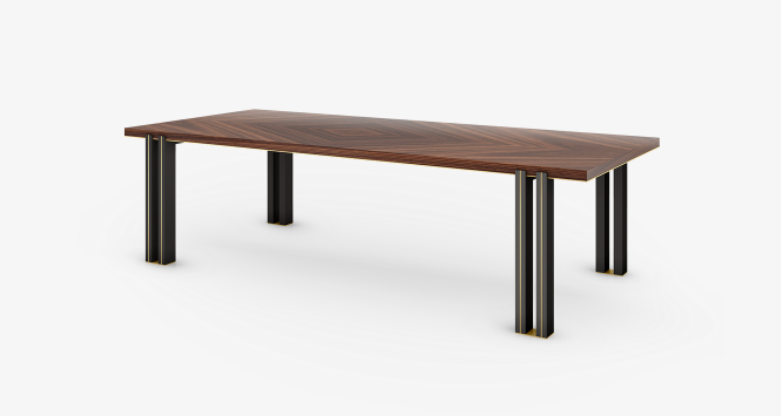 FRATO’s furniture designs are known for their unexpected details. In the case of the KALMAR dining table, extra attention has been given to the double legs, a mixture of glossy lacquer and slender brass.