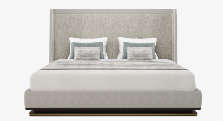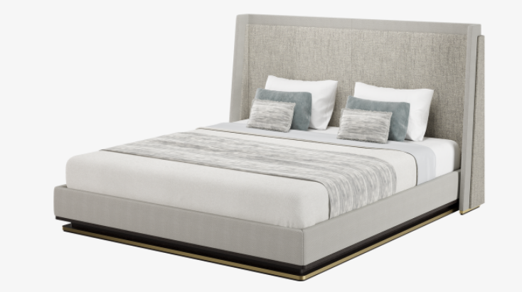The FARIBAULT bed will be the centrepiece of your bedroom. Combining a statement linen headboard, satin wood features and brass accents, it commands attention.