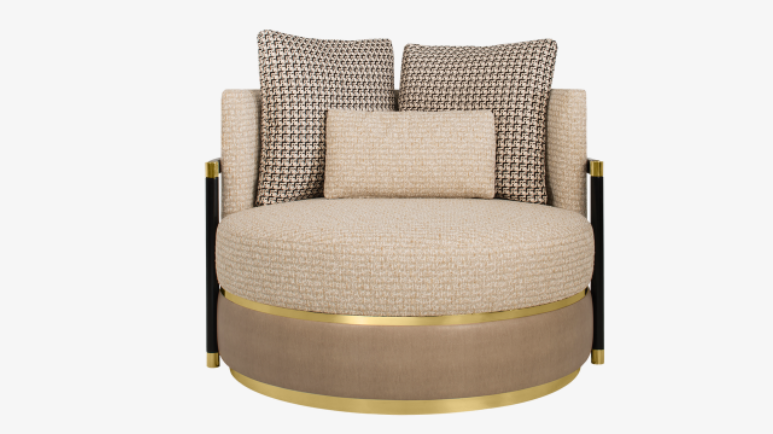 A generous, loveseat-style armchair, the voluptuous COMO attracts attention for all the right reasons. Its discernible appeal is furthered by the plentiful proportions of its oversized, circular seat, while the graphic framework adds an architectural edge to its easy curves.