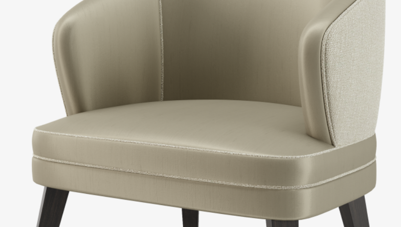 A perfectly poised armchair, the DUBAI II’s curved backrest will conform to the contours of your body. The design’s impeccable upholstery is defined by contrast piping while tapered wooden legs provide a solid foundation.