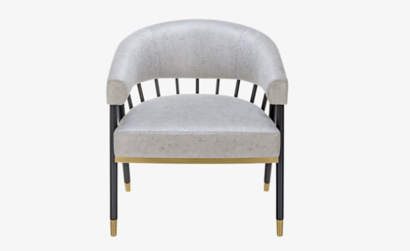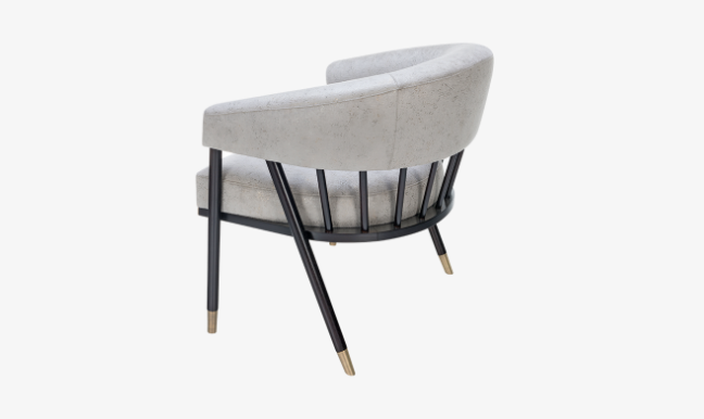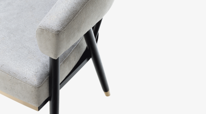 The SAINT DENIS armchair is all about understated opulence, its arresting silhouette is crafted from dark solid wood and embellished with brushed brass. This acts as a foil to the cushioned seat and backrest, both of which are upholstered in an iridescent fabric that shimmers enigmatically as it catches the light.