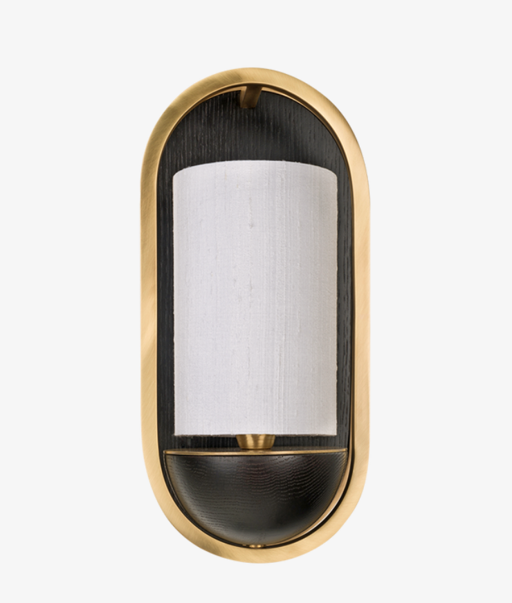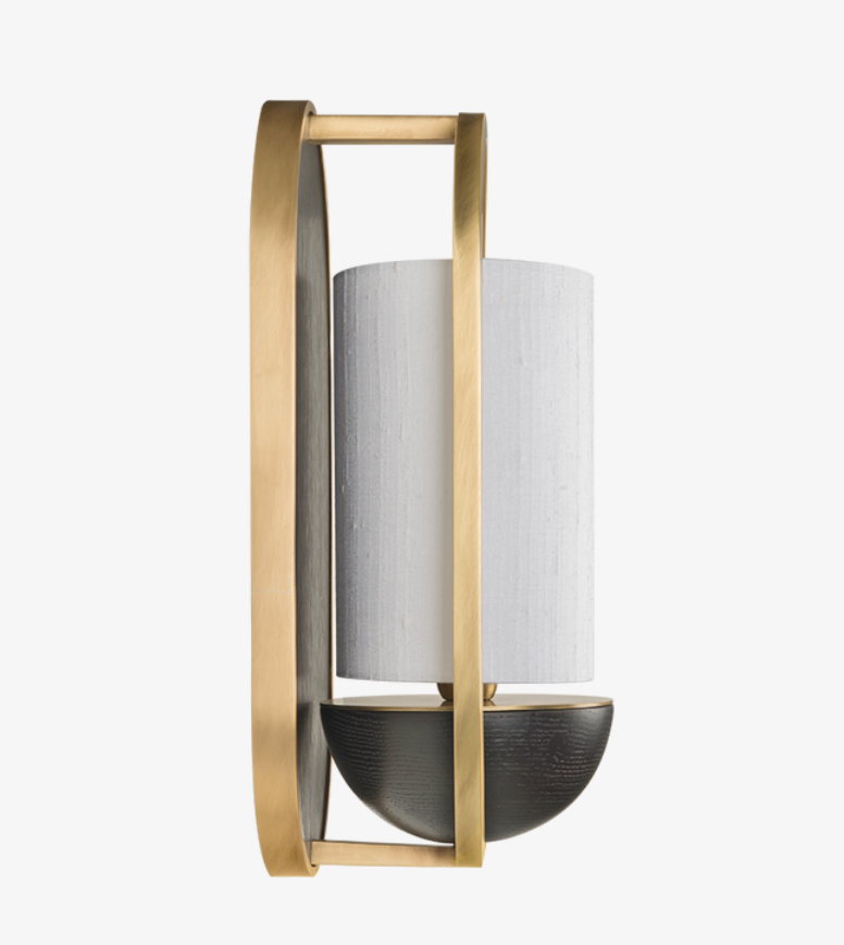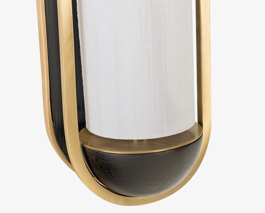 The solid wood and brushed-brass BONN Wall Lamp is designed to gently cast light upwards, washing walls with a soft, ambient glow.