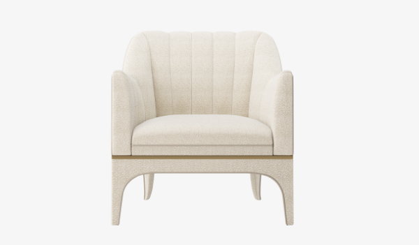The sleek VERDI armchair's pared-back palette showcases the beauty of just three luxury materials to dramatic effect: plush velvet covers the seat and legs, smooth satin provides the piping and lustrous brushed brass highlights a seam and a flowing line of studs.