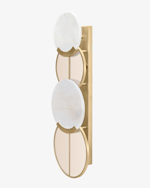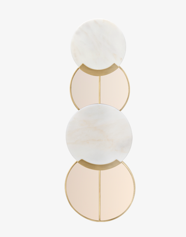 Featuring four incremental circles made from bronze mirror, brushed brass and white marble that disguise the light source, the sculpture-like CARTAGENA wall lamp will illuminate its surroundings with a soft glow.