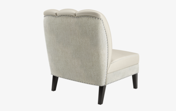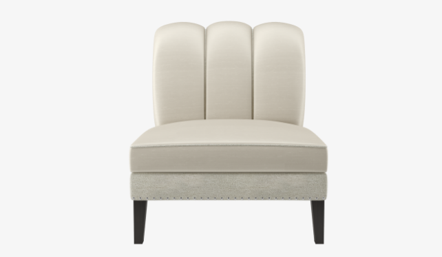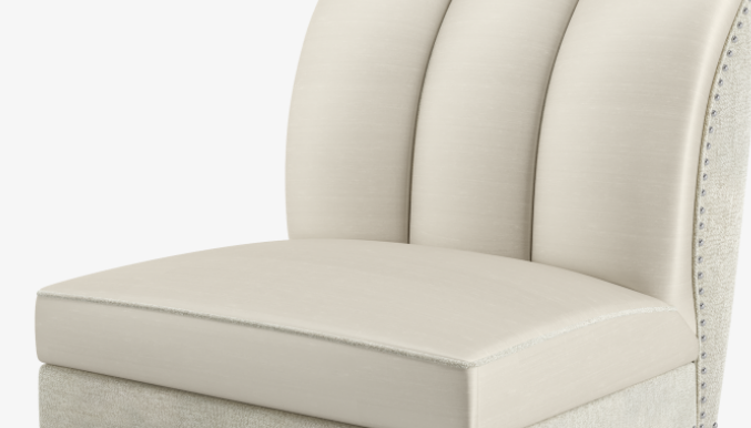 A blend of soft curves and neat angles, the PHILADELPHIA chair exudes sheer luxury. Satin upholstery emphasises the contours of the seat, while a complementary fabric finished with metal studs provides contrast. Solid dark wood legs deliver the finishing touch.