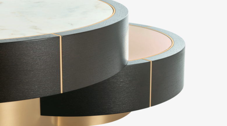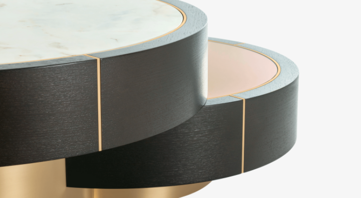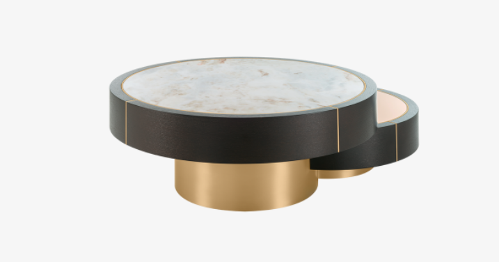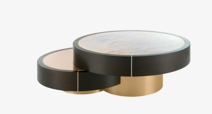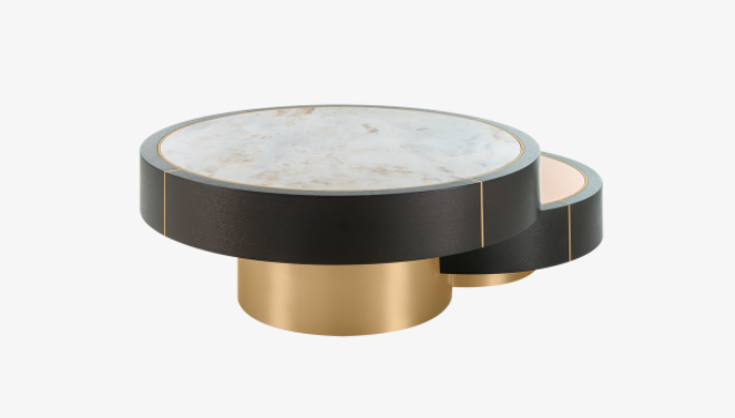 Devised to standout, the distinctive AARHUS Coffee Table is not for run-of-the-mill interiors. Made up of assorted circular shapes that dexterously interlock and overlap, this multifaceted piece possesses a refreshing tempo that’s further enhanced by a medley of luxurious materials.