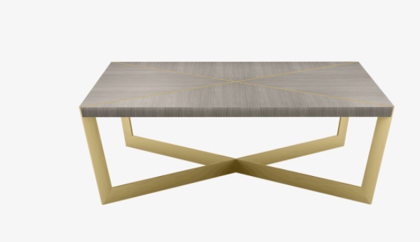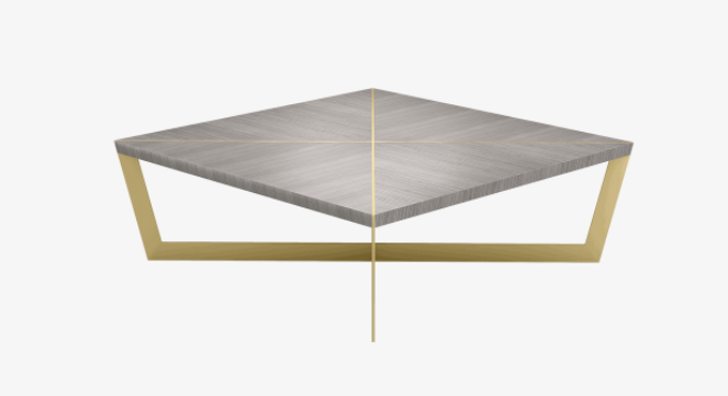 A perfect square, the generous BAROSSA coffee table’s clean-cut surface is crafted from beautifully veined wood veneer and features an X-shape that elegantly echoes the profile of its slimline brushed-brass base.