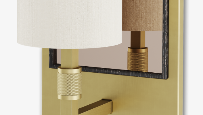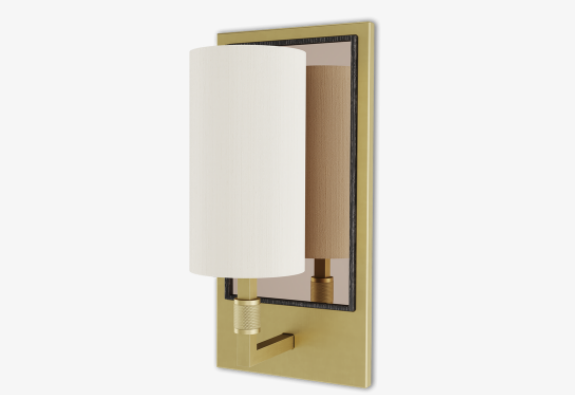 Tradition and modernity combine in this clean-lined LOMBOK wall light, the brushed brass base of which is adorned with a delicately woven fabric panel.