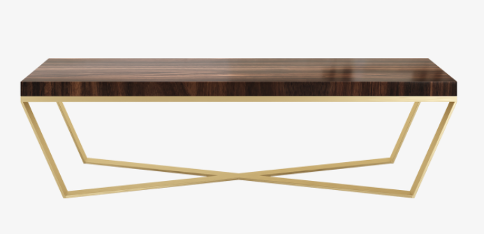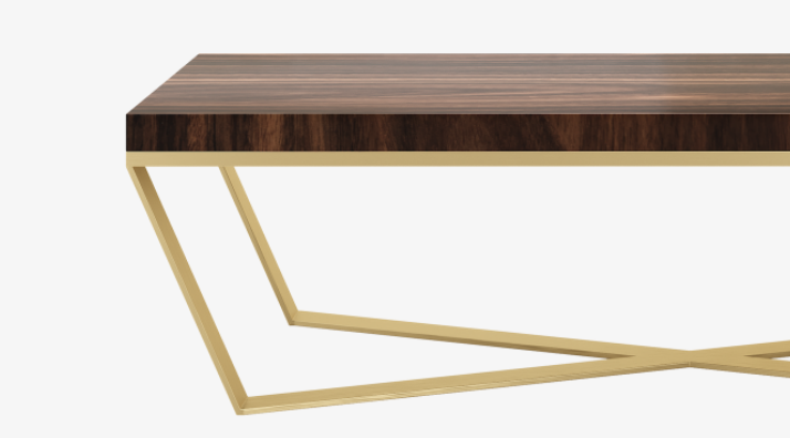 A timeless combination of dark wood veneer and brushed brass, the JOHANNESBURG Coffee Table’s slim, rectangular shape will complement any sofa. A clean-lined and contemporary design, its X-shaped base adds intrigue.