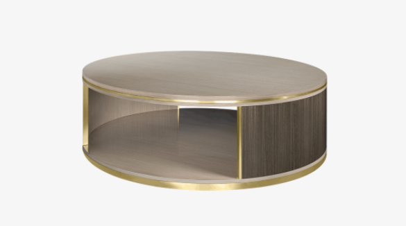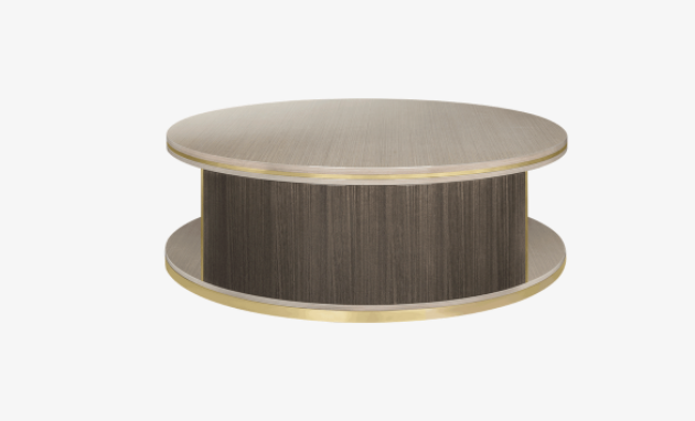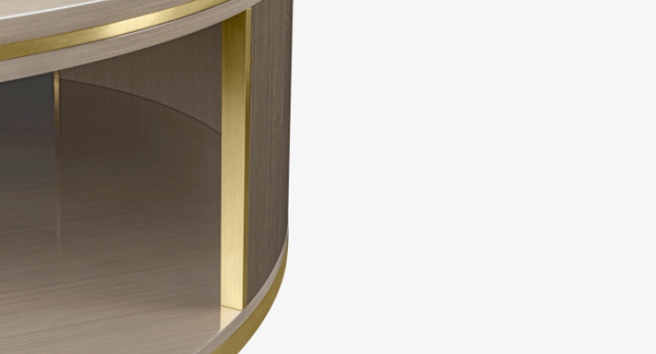 Crafted from two shades of wood veneer and accents of brushed brass, the low-level LIVORNO Coffee Table possesses a multi-dimensional materiality. A generous circular shape, it incorporates a semi-concealed space that’s ideal for storing occasionally used objects, leaving the surface free for everyday items.