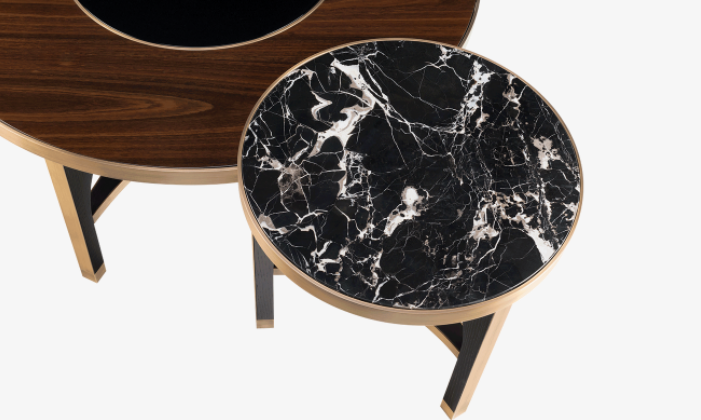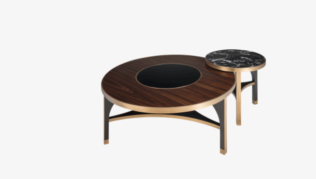An impressive double act, the rhythmical MEMPHIS Coffee Table’s two volumes can be positioned together or apart when extra surface space is required. A different interpretation of the same silhouette, both incorporate a circular top and tripod base that features a signature triangular brace.