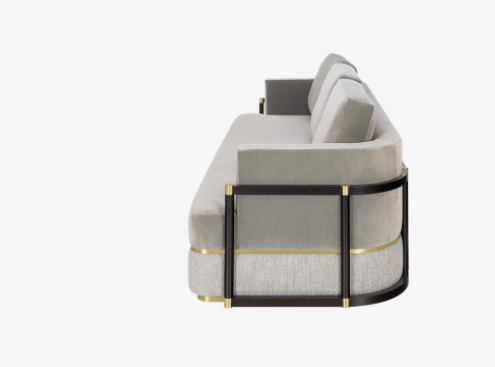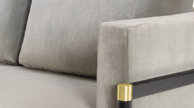 The impressive proportions of the COMO sofa invite you to relax and recline in unparalleled style. Blending a banquette-style seat with three plump back cushions, the design's graphic wood framework adds an architectural edge to its easy curves.