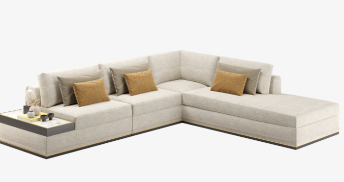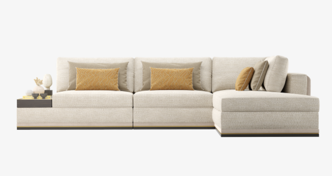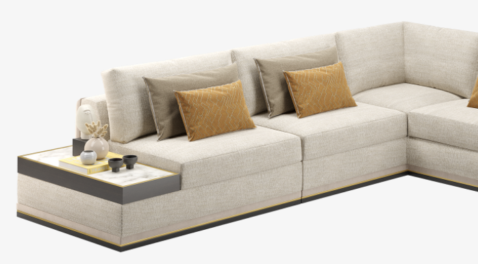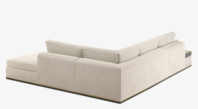 Blending a modern, clean-lined silhouette with laidback, loose-fit cushions, our HIDDEN HILLS sofa's signature creamy-coloured upholstery incorporates cotton, linen and velvet, which contrast beautifully with elements of exotic wood, brushed brass and Calacatta marble.