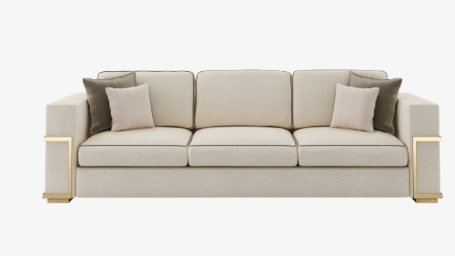 A series of unexpected details set the PABLO sofa apart. Angular arms are softened with loose-fit back and seat cushions, each are outlined with contrast satin piping, while a decorative metallic frame and feet add originality and lustre.