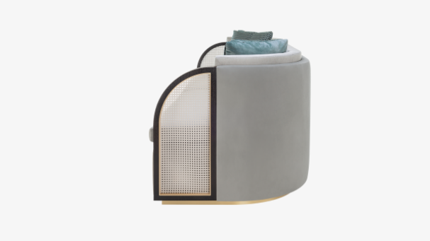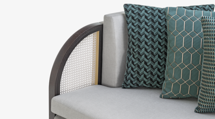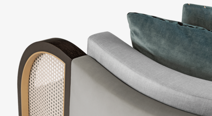 "As inviting as the Eternal City, the ROME sofa beckons you with curved arms, complete with characteristic rattan panels. It's finished with velvet and linen, making it ultra-cosy to sink into. "