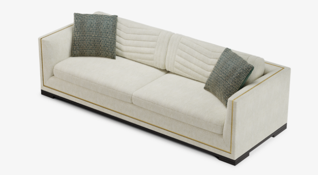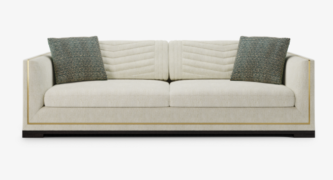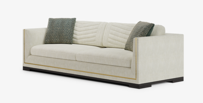 An outright classic, the perfectly proportioned SALZBOURG sofa introduces character to its immaculate silhouette in subtle ways. Notice the chevron stitching across the back cushion, the metallic strip that fames the design and the slender wooden base that adds a sense of gravitas.