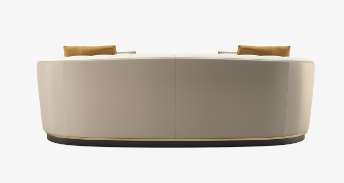 A classic tuxedo-style design, the chic VENICE sofa showcases the expertise of FRATO’s master craftsmen, who seamlessly upholster the design’s curved backrest in deeply cushioned sections and a contrasting fabric across the rear. Metal detailing at the base adds a pleasing point of difference.