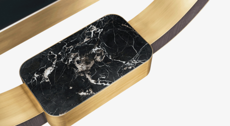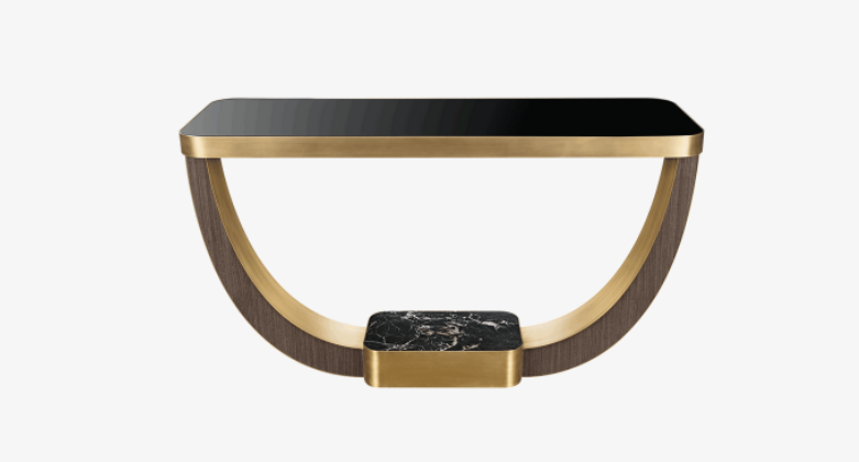 Full of graceful curves and soft edges, the beautiful BOLOGNA console has a sense of lightness and levity that's anchored by a striking stone base, the rectangular shape of which echoes the gentle contours of the slimline black glass top.